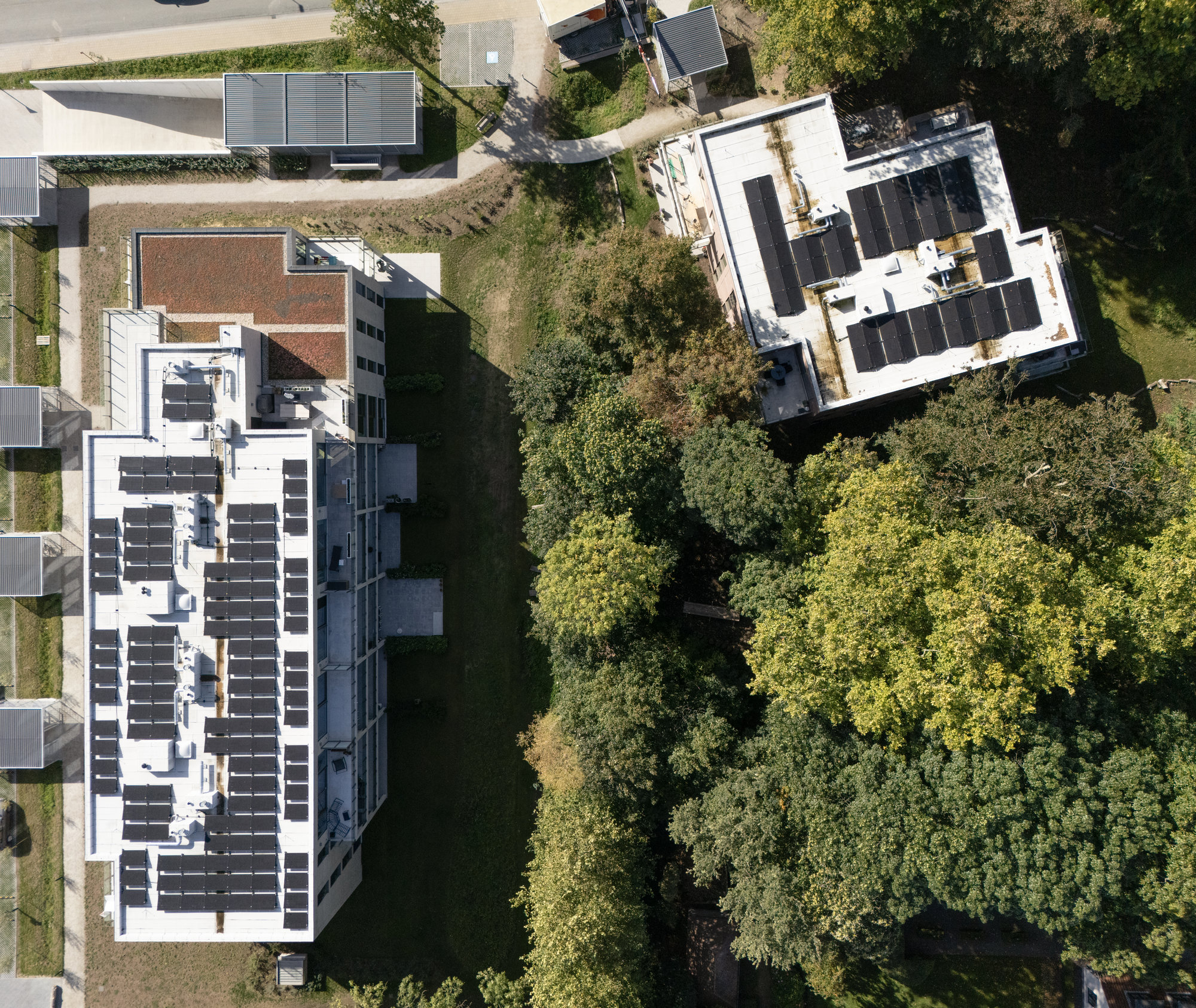 In de zone voor wonen wordt een gebouw opgericht met 33 woonunits. Met haar verspringende kroonlijst wordt een accent gelegd op de bovenste bouwlaag. Rondom wordt het waardevolle groen behouden en in eer hersteld. Het gebouw wordt geplaatst in een ‘grasland’ sfeer op een bolle akker.